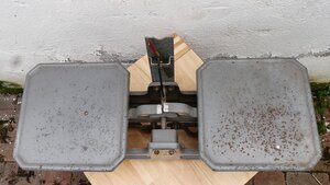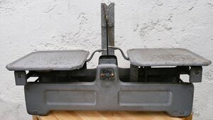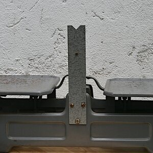 Einfache Tafelwaage (Balkenwaage, Zeigerwaage) nach dem nach dem Konstruktionsprinzip von Joseph Béranger, hergestellt von der Baubeschlagfabrik GmbH, Menden (Sauerland). Vereinfacht gesagt, wird hier eine Balkenwaage durch einen zweiten Balken unterhalb des ersten Balkens ergänzt. Dieser bewirkt, dass das Moment am Waagebalken von der genauen Position der Gewichte auf der Schale unabhängig ist. Die Waage besteht aus dem Corpus und dem Gestänge. Die Waage verfügt über zwei gegeneinander bewegliche Plattformen für die abnehmbare Waagschale bzw. die Gewichte. Sie besitzt zwei von diesen Plätzen ausgehende Arme, die bei Gewichtsgleichheit auf gleicher Höhe sind, und zusätzlich dazu noch einen Zeiger, der bei Gewichtsgleichheit nach oben zeigt. Der Corpus ist ist einfach gestaltet. Er steht auf 4 Füßen. Der Körper der Waage ist hellgrau lackiert. Die Plakette auf der Vorderseite hat die Aufschrift 10 kg und darunter in Zierschrift den Namen des Herstellers Baufa für Baubeschlagfabrik GmbH. Die Punze mit dem Herstellerlogo wurde von 1927 bis ca. 1940 verwendet. Die Waage besitzt keine Eichmarken. Wir bedanken uns beim Stadt- und Waagenmuseum Oschatz für die Unterstützung bei der Inventarisierung dieser Waage.