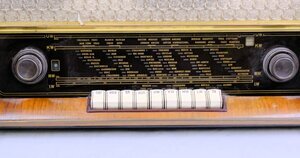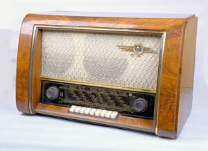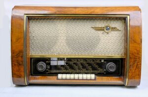 Der Radioempfänger „Atlas 53“ wurde 1953 von Loewe Opta gebaut. Das Holzgehäuse ist in mittelbraunem Nussbaum furniert. Die Vorderfront, mit deutlichen Rundungen, unterstreichen den massiven Gesamteindruck. Hinter der Stoffabdeckung befinden sich zwei 22 cm große Lautsprecher, daneben ein Magisches Auge, eingerahmt vom Firmenlogo. Per Tastendruck werden die Wellenbereiche MW/LW/ KW oder UKW ausgewählt. Weitere Tasten dienen dem Zuschalten eines Plattenspielers/Tonband, dem Ausschalten des Radios und der Klangeinstellung. Mit den großen Drehreglern werden die Sendereinstellung bzw. der Lautstärke ausgewählt. Anschlüsse für Zusatzlautsprecher sind auf der Rückseite vorhanden.