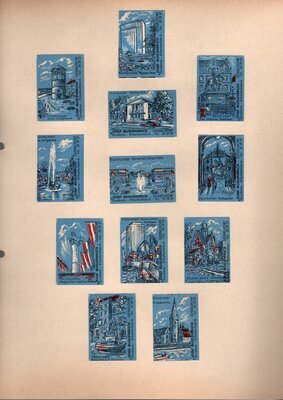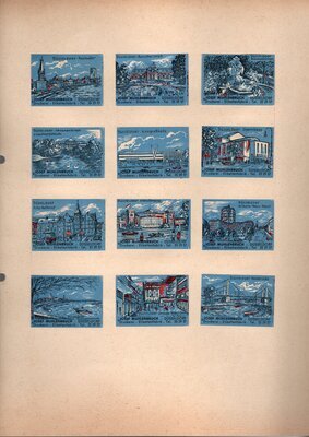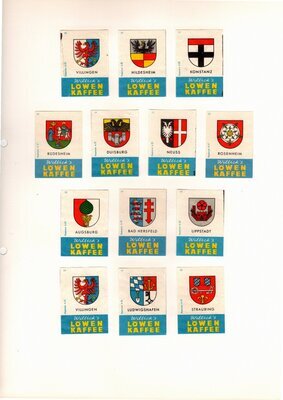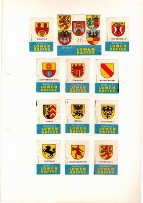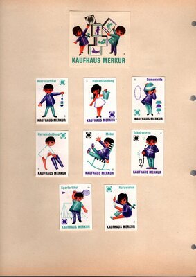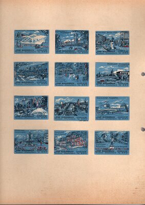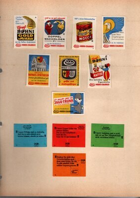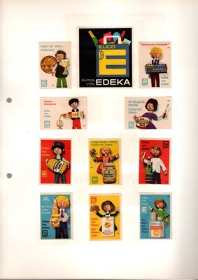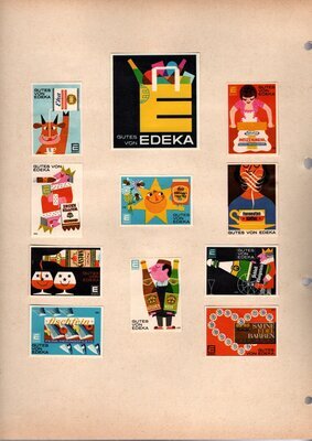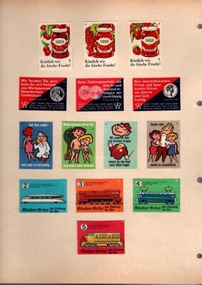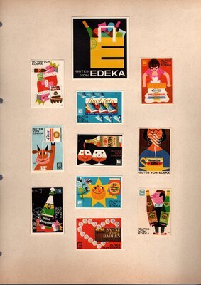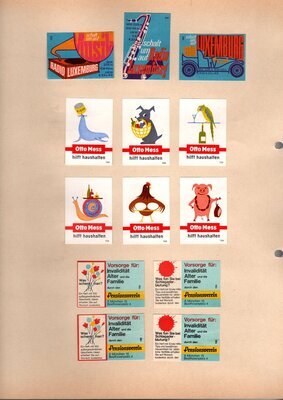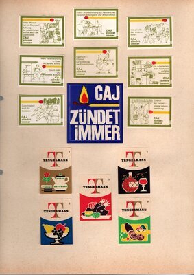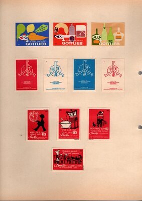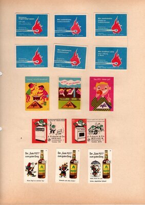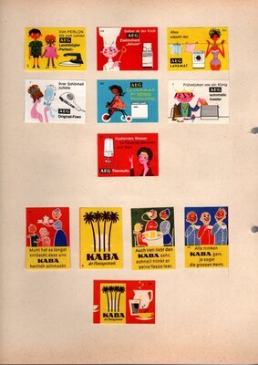 Konvolut von Werbeetiketten für Streichholzschachteln aus Deutschland. Sehr viele Firmen, Vereine, Institutionen und der Handel erkannten und nutzten die Reichweite dieses Werbemediums. Unser Objekt enthält eine Sammlung solcher Werbeetiketten von heute noch existierenden Marken wie Edeka, Rewe und Spar sowie zahlreichen ehemals bekannten und inzwischen weitgehend verschwundenen Marken wie Tengelmann, Kaiser's Kaffee, Horten sowie weiterer wenig bekannter Herausgeber. Aber auch die Stadt Düsseldorf sowie das Land Rheinland-Pfalz sind vertreten. Die Darstellungen umfassen Sehenswürdigkeiten, Porträts berühmter Persönlichkeiten, Musikinstrumente, Flaggen, Wappen, Autos, Werbegrafiken, Witze und weiteres. Überwiegend handelt es sich um Etiketten von Einzelschachteln sowie teilweise von Umverpackungen. Aufgeklebt auf hellem Karton, teilweise auf schwarzem Papier; in einem Ordner abgeheftet. Alle genannten und abgebildeten Firmennamen, Markennamen und Produktbezeichnungen sind Eigentum ihrer jeweiligen Hersteller und gesetzlich oder vertraglich geschützt. Sie dienen lediglich der Darstellung, der Beschreibung und der eindeutigen Identifikation von Museumseigentum.