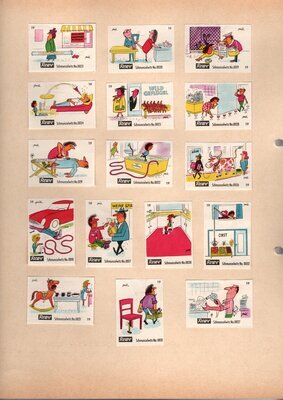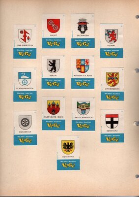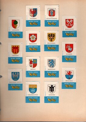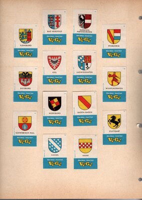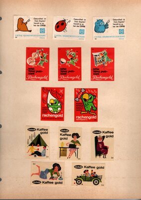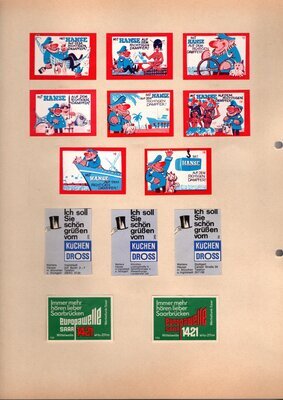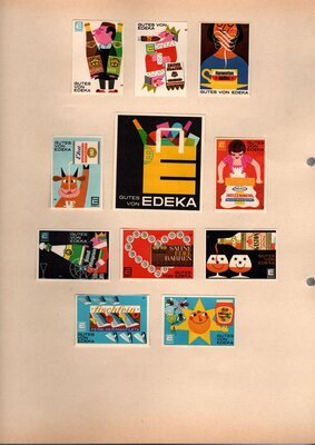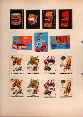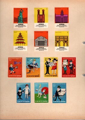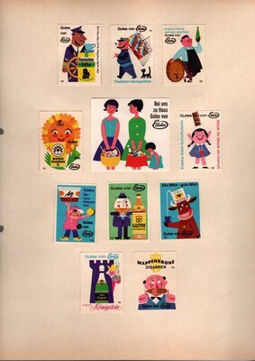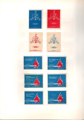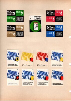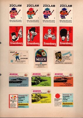 Konvolut von Werbeetiketten für Streichholzschachteln aus Deutschland. Sehr viele Firmen, Vereine, Institutionen und der Handel erkannten und nutzten die Reichweite dieses Werbemediums. Unser Objekt enthält eine Sammlung solcher Werbeetiketten von heute noch existierenden Marken wie Edeka, Rewe und Spar sowie zahlreichen ehemals bekannten und inzwischen weitgehend verschwundenen Marken wie Tengelmann, Kaiser's Kaffee, Horten sowie weiterer wenig bekannter Herausgeber. Aber auch die Stadt Düsseldorf sowie das Land Rheinland-Pfalz sind vertreten. Die Darstellungen umfassen Sehenswürdigkeiten, Porträts berühmter Persönlichkeiten, Musikinstrumente, Flaggen, Wappen, Autos, Werbegrafiken, Witze und weiteres. Überwiegend handelt es sich um Etiketten von Einzelschachteln sowie teilweise von Umverpackungen. Aufgeklebt auf hellem Karton, teilweise auf schwarzem Papier; in einem Ordner abgeheftet. Alle genannten und abgebildeten Firmennamen, Markennamen und Produktbezeichnungen sind Eigentum ihrer jeweiligen Hersteller und gesetzlich oder vertraglich geschützt. Sie dienen lediglich der Darstellung, der Beschreibung und der eindeutigen Identifikation von Museumseigentum.