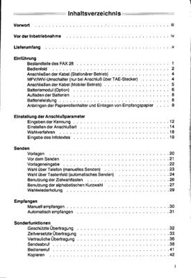 Auf insgesamt 70 Seiten im DIN A 5 Format hoch wird das mobile Faxgerät Gerät, sein Betrieb (Senden, Empfangen, Sonderfunktionen), Störungsbeseitigungen und die Technischen Daten erklärt. Zum besseren Verständnis sind der Anleitung für jeden Schritt zusätzlich Skizzen beigefügt, einschließlich der Zulassungsurkunde durch das Zentralamt für Fernmeldewesen ist für Standard Elekjtrik Lorenz AG ausgestellt.