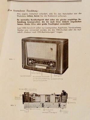 Das 6-seitige Faltblatt im DIB A 5 Formaterklärt den Gebrauch des Radios, der Anschlussbucksen und Bedienteile. An Hand von 2 Abb. werden die einzelnen Teile benannt und im weiteren Verlauf noch einmal erklärt. Auf der letzten Seite sind alle technischen Einzelheiten zusammengefasst und aufgelistet.