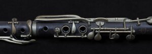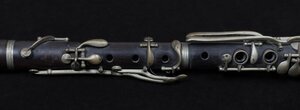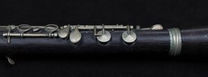 B-Klarinette, Fabrikat Meinel, New York Siegelgravur „Meinl New York B“ in der Nähe des Mundstücks mit zweiter, identischer Siegelgravur in der Nähe des Trichters