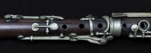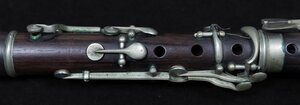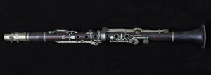 C-Klarinette, Fabrikat Mallach, Kaiserslautern Siegelgravur „Mallach Kaiserslautern“ zweimal am Instrument, bei Mundstück und bei Trichter