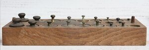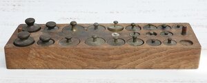 Großer Gewichtssatz mit 20 Gewichten von 2 g bis 250 g und einem leeren Platz. Alle Gewichte besitzen eine Inschrift mit der Gewichtsangabe, einige einen Stern und ein paar besitzen Eichmarken. Die Jahre für das Ende der Gültigkeitsdauer reichen von 1912 bis 1920. Beteiligte Eichdirektionen und Eichämter sind (soweit lesbar): 11/ 31 Köln / ? 10/5 (?) 11/? Köln / ? 9/5 Dortmund / ?
