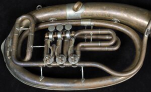Das Tenorhorn in B ist ein Blechblasinstrument mit drei Ventilen, das seit den 1820er Jahren entwickelt und gebaut wurde. Es schließt in Orchestern die Lücke zwischen den tiefen Blechblasinstrumenten, wie der Tuba, und den tiefen Es-Trompeten. Dieses Tenorhorn in B wurde von Rudolf Sander in Wolfstein in ovaler Bauform - auch Böhmische Bauform genannt - gefertigt. In der Nähe des Schalltrichters kann man die Gravur "Sander Wolfstein Pfalz" erkennen. Das Instrument stammt aus der Zeit nach 1875, als die ersten Tenorhörner in Böhmischer Bauform entwickelt wurden.
