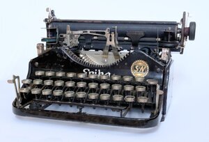 Die Firma Seidel und Neumann aus Dresden, produziert seit 1900 Schreibmaschinen. Zu Beginn waren es die großen Büromaschinen der Marke IDEAL, ab 1910 folgten dann Kleinschreibmaschinen der Marke Erika. Dazu gehörte auch ein zusammenklappbares Reisemodell, das zwischen 1910 und 1930 hergestellt wurde. Unser Klapp-Erika gehört zur Modellreihe 4. An Hand der Fabriknummer 85266, konnten wir die Fabrikation auf die Jahre 1929/1930 eingrenzen. Wie der Name schon sagt, lässt sich der Wagen nach vorne umklappen, um so platzsparender transportiert werden zu können. Leider fehlt bei unserem Objekt der Transportkoffer. Technisch handelt es sich um eine Typenhebelmaschine, mit 3 Reihiger QWERT Tastatur und Vorderanschlag. Nach 1945 wurde die Firma enteignet und in die spätere VEB Robotron eingegliedert.