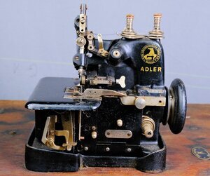 Unsere Adlermaschine mit der Typen Nummer 81 – 6 ist eine Dreifädige Overlock (Überwendling) -Nähmaschine. Die zusätzliche Ziffer 6 sagt aus, dass sie sich besonders eignet, um leichte und mittelschwere Stoffe zu bearbeiten. Die Maschine verfügt über einen ab klappbaren Saumapparat, Abschneide Vorrichtung und Differentialtransportierung. Leider fehlt der komplette Garnhalter. Der Antrieb erfolgt über einen 220 V Elektromotor (400 W), der unterhalb des Tisches angeordnet ist und über das Fußpedal gesteuert wird. Mit ihm lassen sich 4000 Stiche/Min erzielen, was einer Nähleitung von ca. 6,5 m/Min entspricht. Die Produktion der Maschine (Fabriknummer 9272), kann auf die Jahre 1940 -1950 eingegrenzt werden. Der Unterbau samt der Tischplatte stammt nicht von Adler, sondern von der Firma Kochan, einem großen Nähmaschinen Händler, aus Göppingen. Eine Metallplakette der Firma ist auf der Tischplatte eingelassen. Auch in die Tretplatte wurde beim Guss der Name „Kochan Göppingen“ eingearbeitet. Für diese Maschine ist eine Original Anleitung erhalten geblieben, sowie eine Werkzeugbox mit Zubehörteilen. (siehe Link)