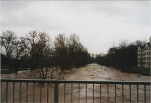 Zei Junge Frauen stehen auf der 1940 gebauten Pionierbrücke über die Ahr