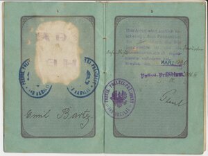 Reisepass Deutsches Reich/ Preussen No. 74/8 für Emil Bartz, Breslau, gültig bis 1921
