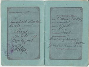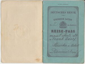 Reisepass des Deutschen Reichs/ Königreich Bayern für Frank Adolf, Rammelsbach, gültig bis 1920