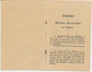 Statuten des Musiker-Verbandes der Westpfalz, Kaiserslautern, Jettenbach. 19. Jhr.