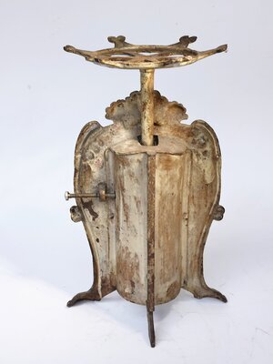 Wirtschaftswaagen sind entweder Federwaagen oder hydraulische Waagen. Die vorliegende Waage ist eine Federwaagen und bestimmt ein Gewicht aufgrund der Verformung einer im Inneren der Waage befindliche Feder. Federwaagen hatten ursprünglich den Nachteil, dass man das Gewicht nur auf 50g genau abwiegen kann und die Feder durch Gebrauch an Spannkraft verliert. Haushaltswaage mit der Aufschrift" Wirtschaftswaage Fabrik Marke S&E" auf dem emaillierten Zifferblatt. Fassung der Waage im Jugendstil. Im unteren Teil des Ziffernblatts befindet sich mit 10 kg die Angabe für die maximal aufnehmbare Last. Federwaagen bestimmen ein Gewicht aufgrund der Verformung einer im Inneren der Waage befindliche Feder. Die Waage wiegt bis zu 10 Kilogramm mit einer Genauigkeit von 50 Gramm. Hergestellt wurden diese Art von Waagen von etwa 1880 bis etwa 1930. Zwischen 1880 und 1887 wurden in Deutschland mindestens 7 Patente für Wirtschaftswaagen erteilt. Für eine Suche im depatisnet (der Datenbank des Deutschen Patent- und Markenamts) ist es wichtig hierbei mit der damaligen Schreibweise also "Wirthschaftswaagen" bzw. "Wirthschaftswaage" im Feld Titel zu suchen. (Link zu Depatisnet siehe unter Weblinks). Da die vorliegende Waage keinen Hinweis auf einen Patentschutz trägt (Aufschrift D.P.A. oder D.R.P.A.) kann davon ausgegangen werden, dass sie zu einem Zeitpunkt produziert wurde, an dem der Patentschutz abgelaufen war. https://virtualtour.deutsches-museum.de/navvis/?site=1893603346956088&vlon=4.01&vlat=-0.02&fov=100.0&image=13637