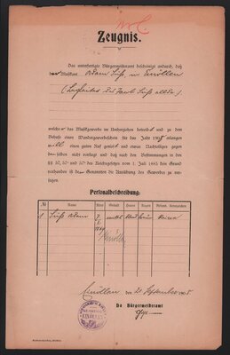Verzeichnis über Wandergewerbescheine 1883-1888