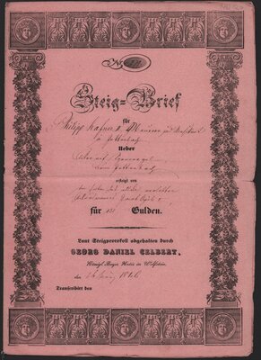 Steigbrief des Musikanten Philipp Hafner, 1846