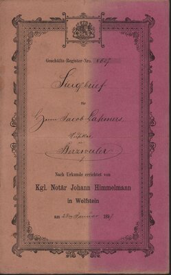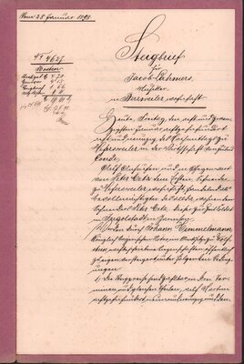 Steigbrief des Musikanten Jacob Lahmers vom 28.01.1897, Berzweiler