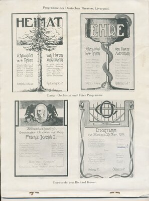 Zeitschrift / Album des australischen Internierungslagers "Liverpool", Liverpool City, Sydney, New South Wales, Australien, von 1914 bis 1916. Der offizielle Name des Lagers "Liverpool" war das Holsworthy Interment Camp. Zur Entstehungszeit des Albums kommandiert von Major S.R. Sands. Das Album enthält Bilder, Zeichnungen und Entwürfe von Stefan Pokora, Otto Hermann und Richard Kunze. Herausgeber war Heinrich Jacobsen