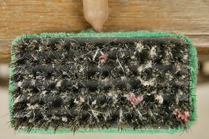 Miniaturblocker (Bohnerbesen, Bohner, Bohnerbürste, Bohnerblocker, Bohnerkeule, Blogger) für die Puppenküche. Der Blocker besteht aus einem gusseisernen Block mit einem Bürstenbelag an der Unterseite, der über ein Kugelgelenk an der Oberseite mit einem Arbeitsstiel, z. B. Besenstiel, gelenkig verbunden ist. Die Seiten des Gussblocks sind zur Schonung der Möbel mit Filz beklebt. Obwohl das Gerät winzig klein ist, ist es einsatzfähig.