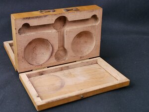 Kästchen eines Militärarztes im Ersten Weltkrieg mit zwei Präzisionswaagen (Handwaagen): Das Kästchen enthält zwei Waagen, die in übereinander liegenden Fächern untergebracht sind. Eine Waage (Fotos 2 bis 8) auf deren Klappe "Giftwage" (mit einem "a") steht, besitzt zwei Waagschalen aus Porzellan mit der Aufschrift Gift. Eine weitere Waage (Fotos 9 bis 13) besitzt Waagschalen aus Horn ohne derartige Aufschriften. Beide Waagen sind gleich groß und sehen sehr ähnlich aus, besitzen jedoch einige Unterschiede: Beide Waagen wurden 1913 (gültig bis 1915) als Präzisionswaage geeicht. Die mikroskopisch "großen" Eichstempel befinden sich auf dem Querbalken. Der Stern zwischen D und R des Eichzeichens weist beide Waagen als Präzisionswaagen mit einer Genauigkeit von 2 mg aus. Die Giftwaage wurde vom Eichamt Ebingen (8) des Aufsichtsbezirks Stuttgart (22), die andere Waage vom Gemeindeeichamt Döbeln (4) des Aufsichtsbezirks Dresden (12) geeicht. Bei beiden Waagen findet sich im Querbalken die Punze 5 g, die als das maximal zulässige Gewicht des Wiegeguts interpretiert werden kann. Bei der Giftwaage ist ebenfalls im Querbalken der Name "VON PONCET BERLIN" eingestempelt. Leider konnte keine Firma, die in dieser Zeit in Berlin Waagen hergestellt hat, gefunden werden. Es gibt einen Hersteller mit diesem Namen der in dieser Zeit in Spremberg bei Cottbus eine Glasfabrik betrieben hat ... Die Waagen waren mit einem Sanitätsoffizier (Militärarzt) im Ersten Weltkrieg. Dass sie später nicht mehr geeicht wurden bedeutet, dass Sie danach nicht mehr für medizinische oder gewerbliche Zwecke benutzt werden konnten. Wir bedanken uns beim Landesamt für Mess- und Eichwesen Rheinland-Pfalz für die Unterstützung bei der Entschlüsselung der Eichzeichen.