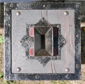 Ehemaliger Opferstock der 1907 geweihten und 2017 profanierten Kirche St. Paulus in Trier. Der hölzerne Opferstock steht auf einem ebenfalls hölzernen Sockel. Der Geldeinwurf ist durch einen Schnabel auf seinem Deckel. An seinen beiden Seiten besitzt er Tragringe. Er besitzt goldglänzende Ornamente auf rotem Hintergrund im Stil der 1920er Jahre. Der Opferstock wurde vor der Annahme im Museum aufgebrochen und auf seiner Rückseite beschädigt.