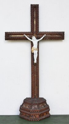 Braunes Standkreuz mit Kerbschnitzerei