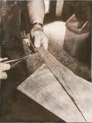 3 Kartonkarten im Format einer (einfachen) Bahnkarte 1. Berechtigung zu einer Zugfahrt (mit einem Faden umwickelt) 2. Bahnsteigkarte 3. Pseudo Bahnkarte mit Portrait der Person