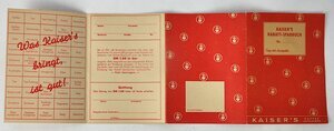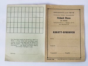 Vier Rabattheftchen. Bei jedem Einkauf über einem gewissen Betrag bekam man entsprechende viele Rabattmarken. Diese konnte man in ein vorher kostenlos erworbenes Heftchen einkleben. Wenn dieses voll war bekam man einen (eher kleinen) Betrag wieder zurück.