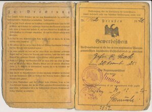 Wandergewerbeschein des Wilhelm Wendel, Ausgestellt am 20.11.1925 in Preußen
