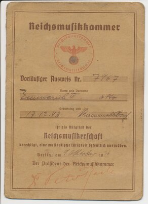 Reichsmusikkammer Ausweis des Otto Emmerich
