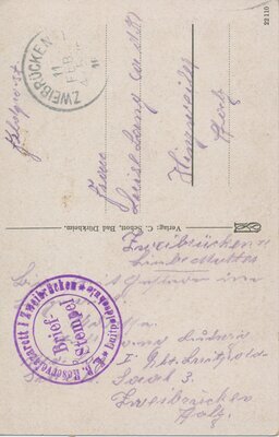 Postkarte an Luise Lang, Hinzweiler