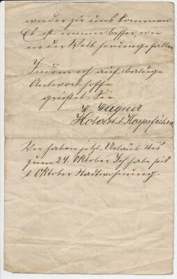 Arbeitsangebot durch die Militärmusik für den Wandermusikanten Eduard Rübel aus Etschberg, der sich an Bord der „Victoria Luise“ befindet.