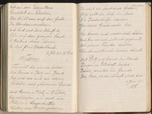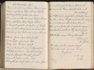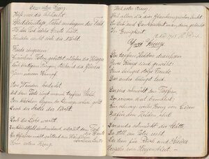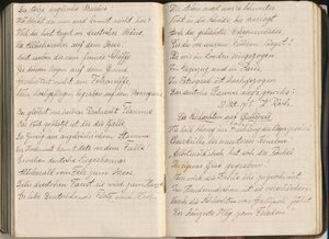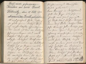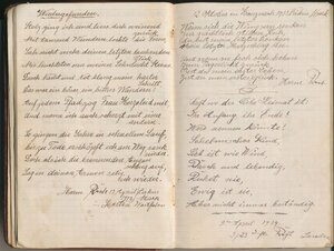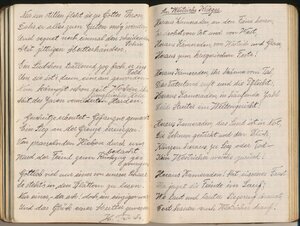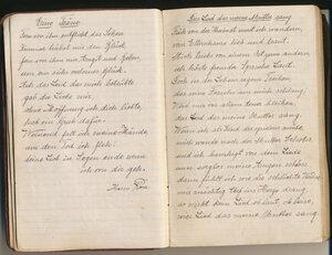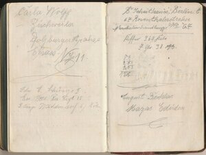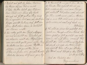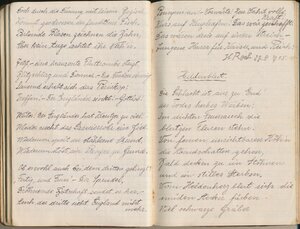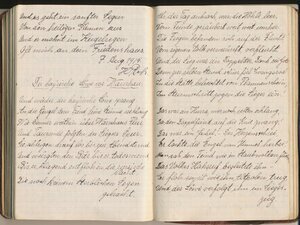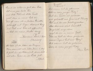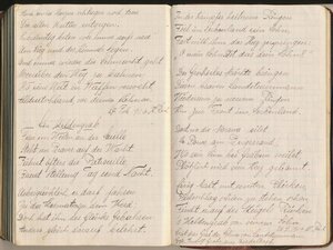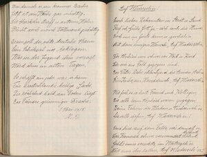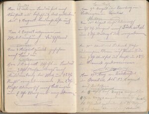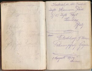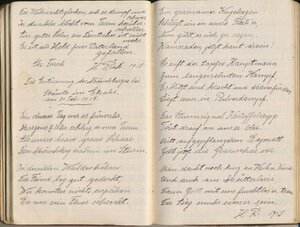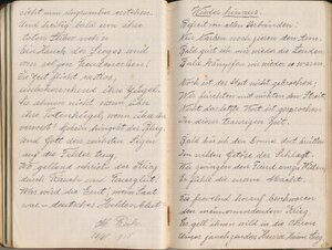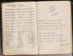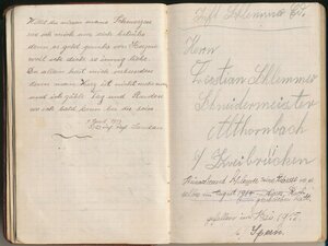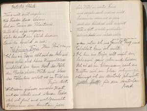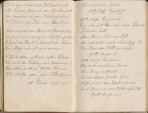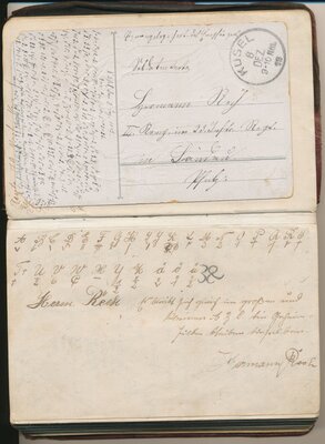 Tagebuch des Wandermusikanten Hermann Rech aus Etschberg mit Postkarte vom 08.12.1913, geschrieben in Geheimschrift.