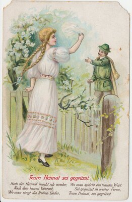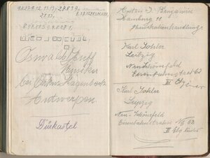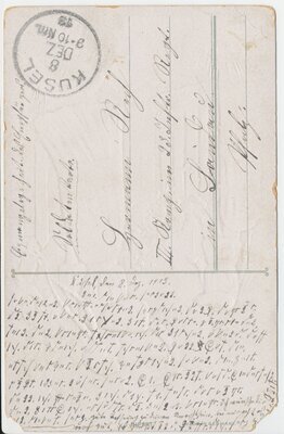 Tagebuch des Wandermusikanten Hermann Rech aus Etschberg mit Postkarte vom 08.12.1913, geschrieben in Geheimschrift.