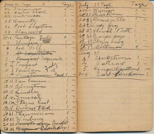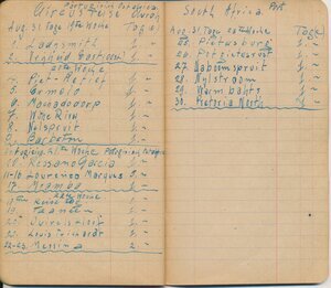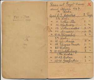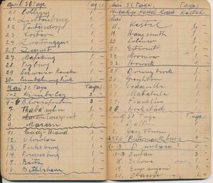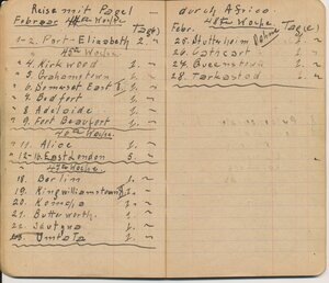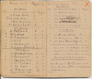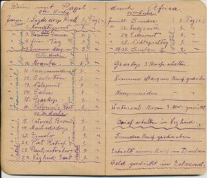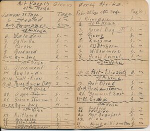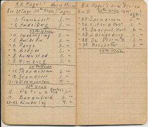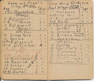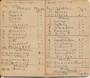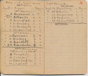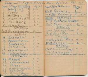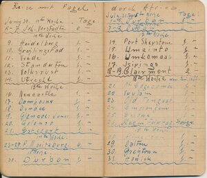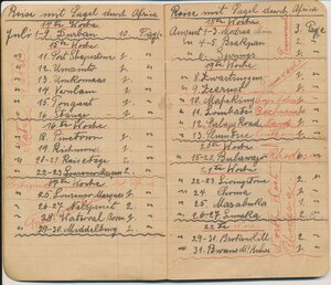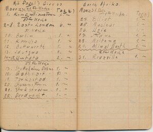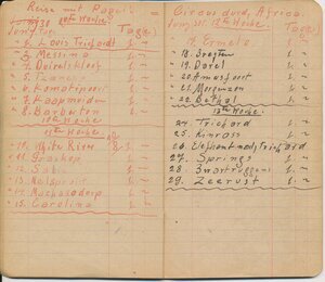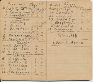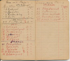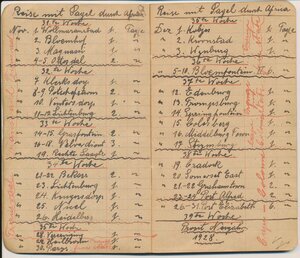 Reisetagebuch des Wandermusikanten Emil Bartz, Rammelsbach, von seiner Reise mit dem Circus Pagel durch Südafrika. Im Buch sind alle Stationen des Circus von 1927 genaustens aufgeführt.