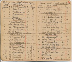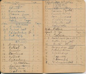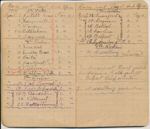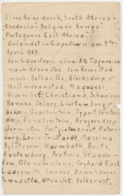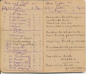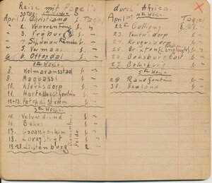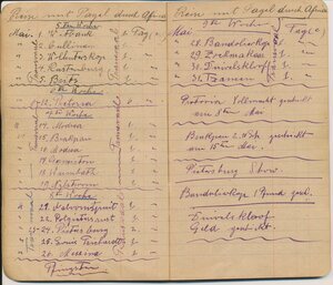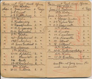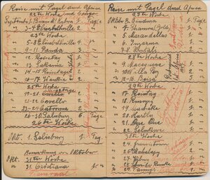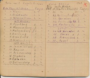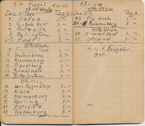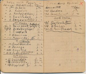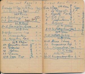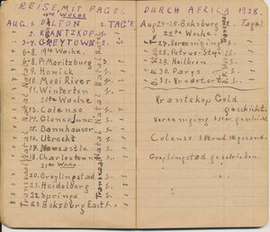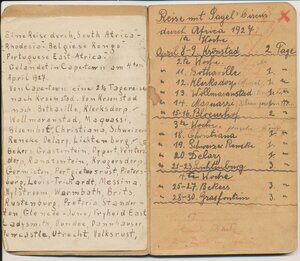 Reisetagebuch des Wandermusikanten Emil Bartz, Rammelsbach, von seiner Reise mit dem Circus Pagel durch Südafrika. Im Buch sind alle Stationen des Circus von 1927 genaustens aufgeführt.