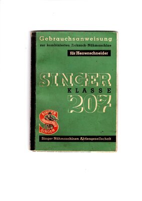 Die Singer 207 D ist eine spezifische Nähmaschine für Herrrenschneider. Entsprechend umfangreich ist auch die Betriebsanleitung. Auf insgesamt 74 Seiten im DIN A 5 Format werden die Einzelteile der Maschine, der allgemeine Gebrauch und der Einsatz von speziellem Zubehör detailliert beschrieben. Insgesamt 100 Abb. unterstützen den Text. Auf den beiden letzten Seiten werden Singer Garne, Singer Nadeln, Singer Motoren und Singer Handwerker-Nählicht beworben.