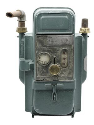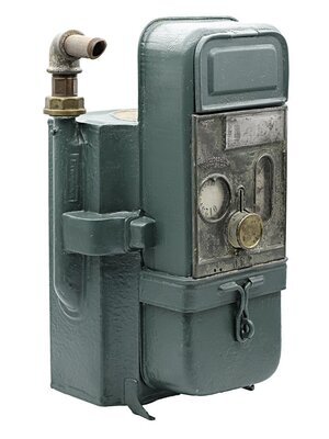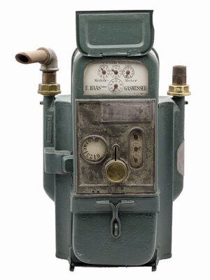 Bei diesem Objekt handelt es sich um einen trockenen Gasmesser des Mainzer Unternehmens Elster & Co nach dem Patent von Emil Haas. Er lässt sich durch die runde Plakette auf der Oberseite aufs Jahr 1916 datieren und wird nicht mehr wie in den Jahren zuvor durch eine Messflüssigkeit betrieben. 1927 wurde er neu geeicht. Mit diesem Apparat konnte der Gasverbrauch in Mainzer Haushalten gemessen und mit der Stadtverwaltung abgerechnet werden. Frühe Gasmesser wie dieser hatten teilweise sogar noch einen Münzeinwurf, um die Gasmenge im Voraus zu bezahlen. Bei diesem Modell mussten 10 Reichspfennige eingeworfen werden.