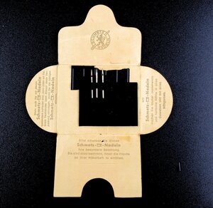 Die beiden verbreiteten Nadelsysteme für ältere Nähmaschinen sind Flachkolben-Nadeln, (Haushaltsmaschinen) und Rundkolben-Nadeln für Industriemaschinen. Jeder Hersteller versuchte das Nadelgeschäft in den eigenen Händen zu halten, was zu einer Vielzahl von Marken wie Pfaff, Singer, Gritzner, Kayser u.a. führte. Die Produktion Nähmaschinennadeln oblag nur wenigen Herstellern. Dazu gehörten Nadeln der Fima Schmetz (siehe Bild) und der Firma Mauser. Unsere Schmetz Nadeln, sind in einem gelben Faltbriefchen, mit dem Firmenlogo, zu je 5 Nadeln verpackt. Die Firma Schmetz existiert noch heute und hat ihren Sitz in Albstadt. (siehe Link) Auch die Firma Mauser, eher bekannt durch Gewehre, produzierte 1939 für kurze Zeit Industrienähmaschinen. Nach dem Krieg wurden zunächst Haushaltsartikel hergestellt. Dazu gehörten auch Nähmaschinen-Nadeln. Verpackt in schwarze Faltbriefchen zu je 25 Stück und einem Etikett mit Firmenangaben auf der Vorderseite. (siehe Bild)
