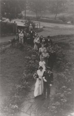 Auf der Rückseite der Heiratsanzeige vom 31. 12. 1935 grüßt das Brautpaar sein Freunde und schickt gleichzeitig Neujahrsgrüße und Glückwünsche. Das Brautpaar Schöler betrieben die Pension Haus Ahrperle im Kurviertel. Dieses Haus wurde später geteilt. Eine Hälfte ist im Privatbesitz und die andere Hälfte gehört einen Seniorenheim.