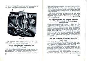 In einem kleinen Büchlein mit 80 Seiten im Format 10 x 15 cm gibt Pfaff den Verwendern einen praktischen Leitfaden an die Hand. Im Inhaltsverzeichnis sind 61 Kapitel aufgeführt, in denen der richtige Betrieb und die ordentliche Pflege der Maschine beschrieben werden. Darüber hinaus gibt es auch praktische Hinweise wie das Herstellen von Ziernähten, Känteln, das Nähen von Knopflöchern, sticken und stopfen, Kräuselarbeiten, um nur einige zu nennen. Mit insgesamt 53 guten Abbildungen werden alle beschriebenen Kapitel auch visuell unterstützt. Auf der letzten Seite ist noch ein Garantieschein aufgedruckt, der allerdings keine Maschinenspezifische Angaben enthällt.
