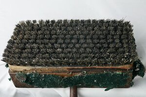 Braungrauer oberflächlich angerosteter Bohner ( Bohnerbesen, Blocker, etc.) mit einem langen in eine Eisentülle eingelassen Stiel. Der Bohner besteht aus einem gusseisernen Block mit einem Bürstenbelag an der Unterseite, der über ein Kugelgelenk an der Oberseite mit dem Arbeitsstiel, z. B. Besenstiel, gelenkig verbunden ist. Die Seiten des Gussblocks sind zur Schonung der Möbel mit dunkelgrünen Filz beklebt. Auf dem Gusseisen des Bohners befindet sich die Aufschrift "KLÜZIT GES. GESCH.". Der mit dem Kugelgelenk am Blocker befestigte Stiel kann trotz des Kugelgelenks nur in zwei Richtungen bewegt werden. Die Unterseite der Bohnerplatte ist mit Borstenreihen besetzt, Mit dem Blocker wird gebohnert, wozu Bohnerwachs verwendet wird. Das heißt, mittels Hin- und Herbewegen des schweren Arbeitsgeräts werden Holz- und Linoleumböden, gegebenenfalls auch Stragula-Böden, auf Hochglanz poliert. Das erhebliche Gewicht der Bohnerplatte sorgt dabei für ein entsprechendes Andruckgewicht. Dem braungrau lackierten Bohner ist sein langes Arbeitsleben anzusehen. Die Oberfläche ist fleckig und angerostet, die Borsten sind niedergedrückt und der Filz am Rand steht teilweise ab und wirkt stark beschädigt.