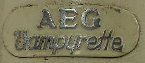 Die ab 1952 produzierte AEG Vampyrette gehört zu den ersten in Deutschland produzierten Handstaubsaugern. Der Staubsauger besteht aus einem schwarz lackiertem Holzstiel, einem später vor dem Stecker abgeschnittenen Anschlusskabel, dem eigentlichen, cremefarben Korpus, einem rechts (aus der Sicht des Bedieners) neben dem Korpus und an diesem angeschlossenen weinroten Staubbeutel. Auf diesem befindet sich auf der Vorerseite die Aufschrift "AEG-Vampyrette" und auf der Rückseite die Aufschrift "Bitte, reinige mich nach jedem Gebrauch". Im Korpus befindet sich der Motor und das Gebläse. Links am Korpus ist ein schwarz lackierter Holzgriff angebracht. Die Anbringung des Staubbeutels neben dem Korpus ist aus heutiger Sicht ungewöhnlich. Die Saugdüse ist nicht original und oben eingerissen. Einige Gummiringe sind gebrochen bzw. abgängig. Das benötigt einen 220 V Netzstannung (das Modell war auch 140 V Netzspannung zu haben), zog 180 Volt aus dem Stromnetz und war Funkentstört. Es sind die folgenden Produkzions oder Seriennummern zu finden: Nr 10 OV 40 und PL Nr 52/0550-3
