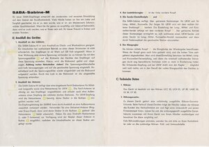 Eine 6 seitige Bedienungsanleitung für das SABA-Röhrenradio „Sabine-M“ von 1959/60 mit einer Abbildung des Gerätes und den technischen Daten.