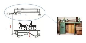 Mit Fahrzeugwaagen wurden ursprünglich Pferdefuhrwerke gewogen (siehe 2. Foto). Und als die Pferde durch Traktoren ersetzt wurde auch diese. Die Abbildungen 2 und 3 zeigen die Funktionsweise dieser Waage bei einem Wiegevorgang. Um die Erntemenge zu wiegen fuhr man das Gespann zuerst unbeladen und später beladen auf die Waage und konnte so die Zuladung errechnen. Zur Dokumentation des Ergenisses der Wägung konnte am Laufgewicht ein Wiegekärtchen ausgegeben werden (siehe Abbildungen 4 und 5). Die große Fahrzeugwaage in der Güterhalle ist aus drei Teilen zusammengesetzt. Der Rahmen stand - mit Estrich zugegossen - schon vor der Translozierung in dieser Güterhalle. Der Waagbalken stammt aus einer vom Originalstandort aus nahegelegenen im Verfall begriffenen Halle eines Kohlehändlers und die Waagplatte wurde vor der Waage rekonstruiert, allerdings ohne die zugehörige Mechanik. Dies erklärt auch die unterschiedlichen Maximalgewichte: 15 t am Rahmen und 19 t am Waagbalken. Die Wiegeeinrichtung setzt sich aus vier einzelnen Balken zusammen, mit denen ein Gewicht auf 4 Stellen genau bestimmt werden kann: Auf dem obersten und dickstem Balken kann das Laufgewicht verschoben werden. Er besitzt von links nach rechts eine Skala von 0 kg bis 1000 kg. Die anderen drei, kleineren Balken sind im großen Laufgewicht verschiebbar befestigt. a) 0 .. 19 t b) 900 .. 0 kg c) 90 .. 0 kg d) 9 .. 0 kg Nach Einrasten des Laufgewichtes in die 1000 kg Kerbe werden die nachfolgenden 100-kg- / 10-kg- und 1-kg-Riegel so verschoben, bis die Waage im Gleichgewicht ist. Es sind mehrere Eichzeichen vorhanden: Ein blauer Aufkleber "Geeicht bis 1997" auf dem Rahmen (am Rand sieht man etwas von einem roten Aufkleber darunter) Eine Punze 4 / D / 9 auf dem Laufgewicht. Steht für Rheinland-Pfalz / Deutschland (ab 1975) / Eichamt Trier Ein in Blei eingedrückter Stempel mit dem Eichzeichen 4 / D / * bedeutet vom "Landesamt RLP selbst geprüft" - und daneben die 97 im Wappenschild für "Geeicht bis 1997" Wir bedanken uns ganz herzlich bei Herrn Rigobert Biehl, Landesamt für Mess- und Eichwesen Rheinland-Pfalz, für die Erklärung und die Skizzen zur Funktionalität dieser Waage.