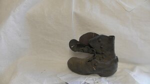 Ein Einzelner Schwarzer Stiefel aus Leder. Bei dem Schuh ist der vordere Teil abgeschnitten und fehlt, zudem ist die Sohle ab. Er verfügt über keine Schnürung aber über Haken. Hinten am Schuh befindet sich eine Lederlasche. Der Absatz der Stiefel ist 3 cm.