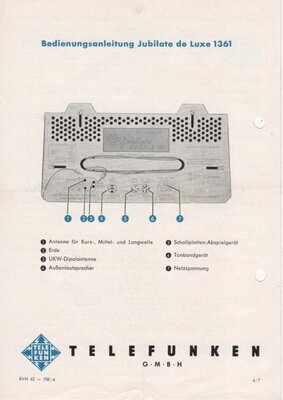 Gebrauchsanleitung für Radio Telefunken Jubilate de Luxe 1361