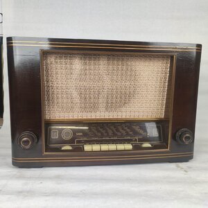 Typisches Querformatradio im hochglänzenden Holzgehäuse aus Anfang der 50 ger Jahre. Es dominieren Tasten ( statt der Knöpfe in den Vorjahren ) sechs an der Zahl, zur Einstellung von Ein/ Ausschalter; Tonabnehmer ( Schallplattenspieler ) ; Wellenbereiche LW; MW; KW und UKW oder Fernsehton. Standartmäßig mit einem magischen Auge ( Type: EM34 oder EM35 ) zur genauen Sendereinstellung ausgestattet.