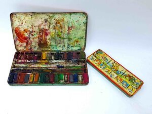 Beide Farbkästen sind aus Metall gefertigt und aufklappbar. Einer der beiden Farbkästen ist kleiner, eventuell wurden in ihm die Pinsel aufbewahrt, während in dem größeren Farbkasten die Farben untergebracht sind. Der Boden der beiden Dosen ist türkis-blau und die Deckel sind mit Kindermotiven verziert und jeweils orange umrandet. Auf der kleineren Dose sind vermutlich im unteren Teil des Deckels Schneewittchen und die sieben Zwerge abgebildet. In dem größeren Farbkasten sind bis heute die Farben erhalten und der Farbkasten weist starke Gebrauchsspuren auf, die darauf schließen lassen, dass er oft verwendet wurde. Beide Farbkästen tragen den Schriftzug "Made in Germany", wobei der größere der beiden auch noch den Schriftzug "D. Patent angm." besitzt. Sonst besitzen sie keinerlei Kennung, die auf den Hersteller hinweisen könnte. Die Farbkästen gelangten durch eine Schenkung in den Museumsbestand. Die Maßanagaben entsprechen dem größeren der beiden Farbkästen.