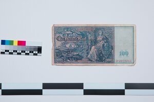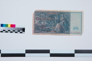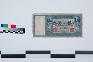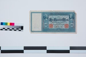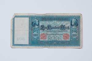 Banknoten 100 Mark, großer Schein, orangener Stempel