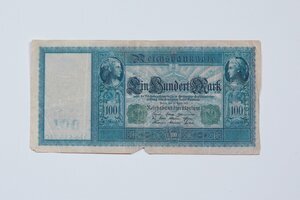 Banknoten 100 Mark, großer Schein, grüner Stempel